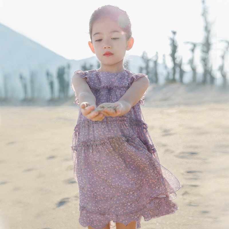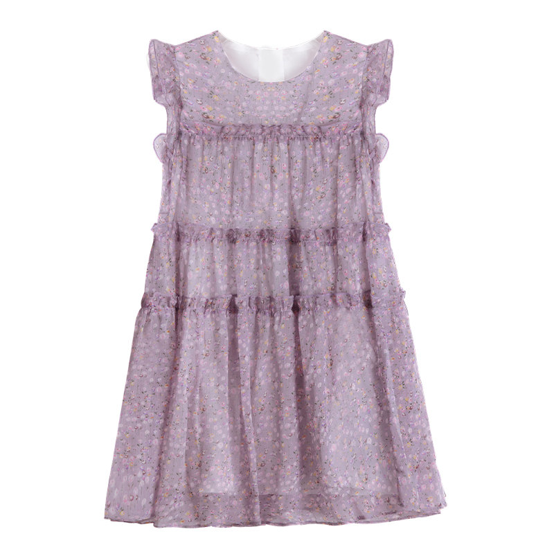 LYNNMILO LMLO Myro girls crushed flower dress 2023 Summer sweet gas purple sleeveless skirt