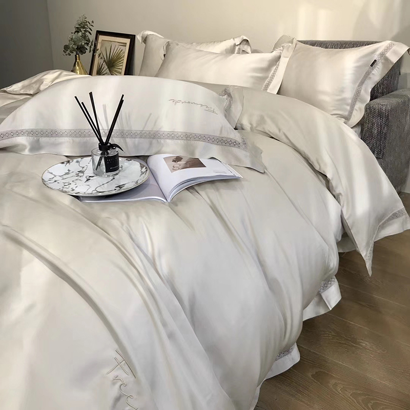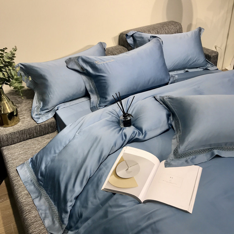 High-end 80 pieces of hyaluronic acid Tencel four-piece ice silk double-sided Nordic light luxury plain color summer silk slippery bedding