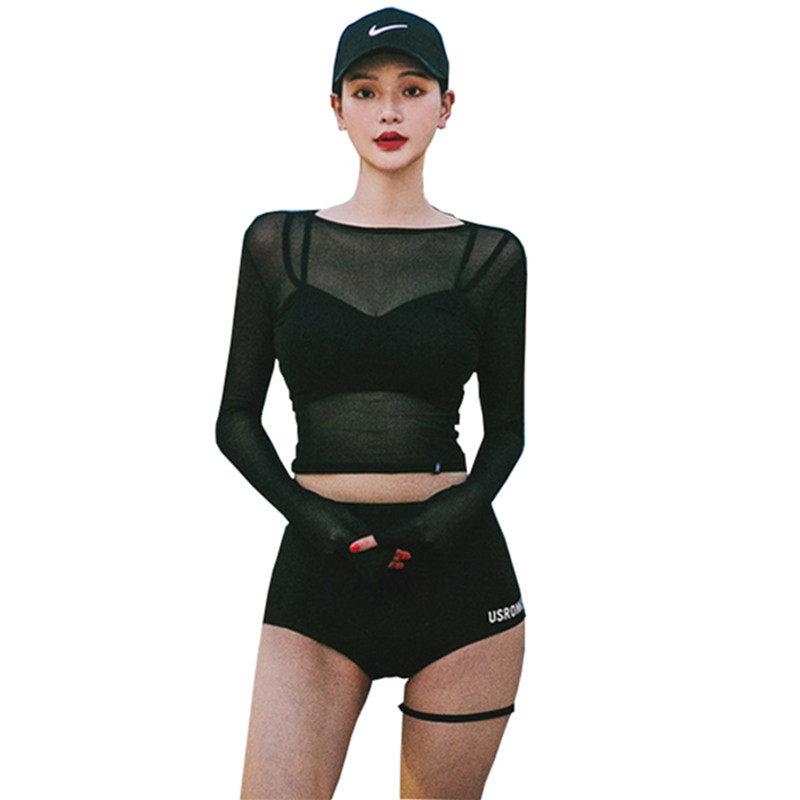 Bikini spa swimsuit women's three-piece set fairy fan thin cover belly sexy gathering Korean ins swimswear blouse