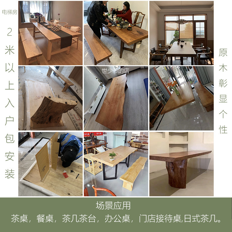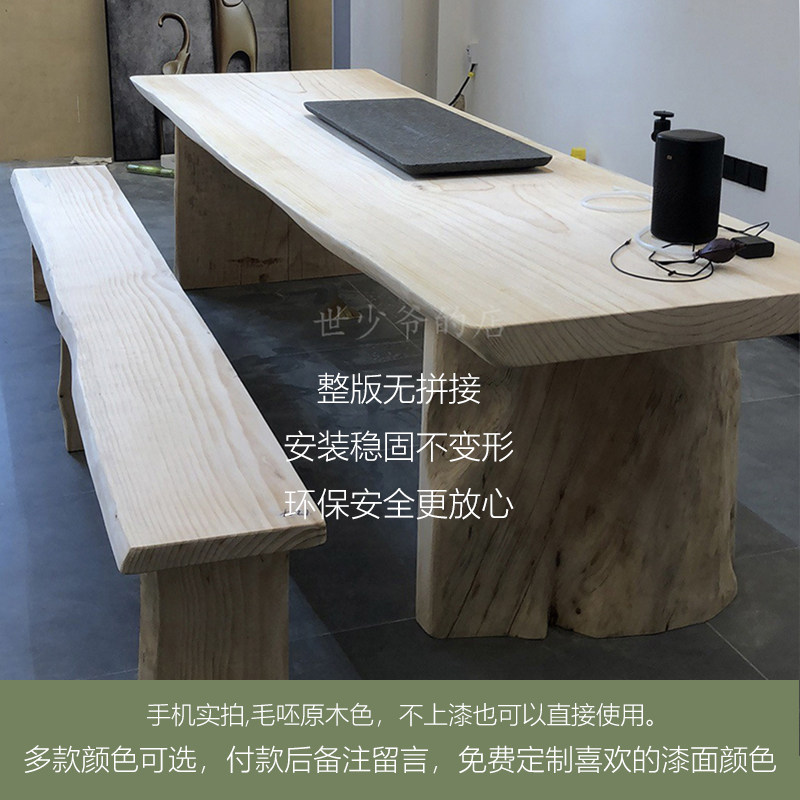 Solid wood large board coffee table Chinese kung fu tea table bar countertop conference table irregular board pine natural edge original board