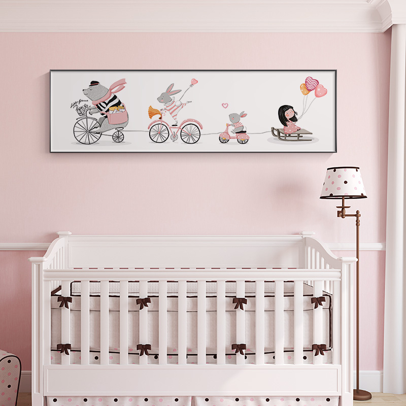Nordic children's room decoration painting Modern simple cartoon wall painting Bedroom banner mural Girl with Mr Bear childlike