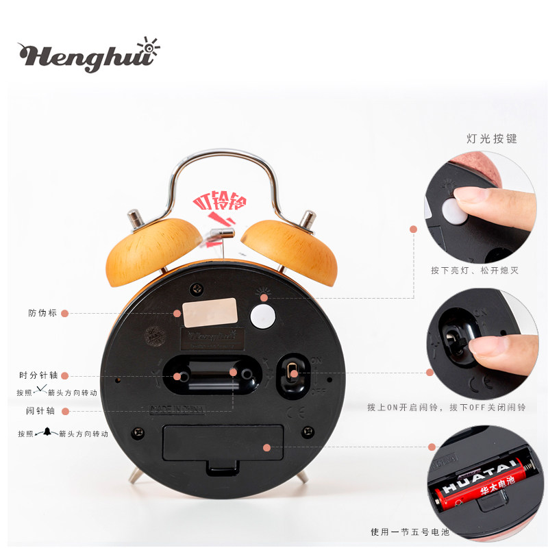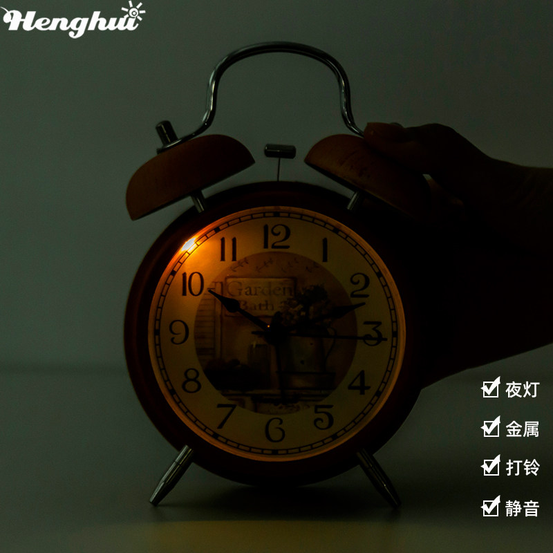 Henghui Fashion Creative Bedroom Brief Silent alarm clock Students with headboard metal alarm bells Children's alarm clock