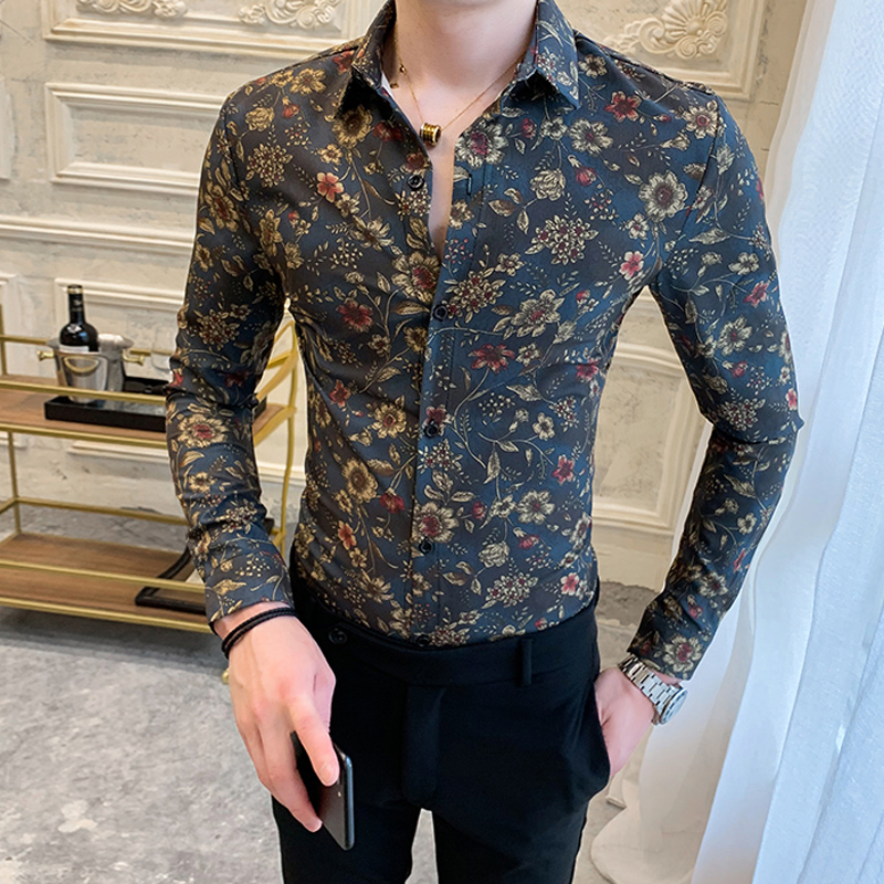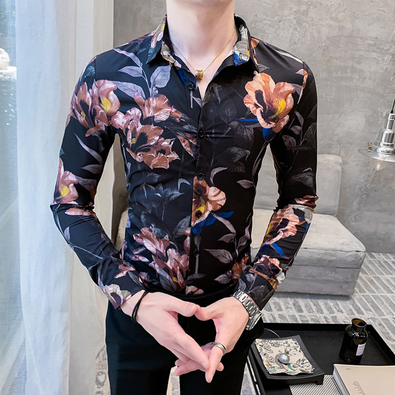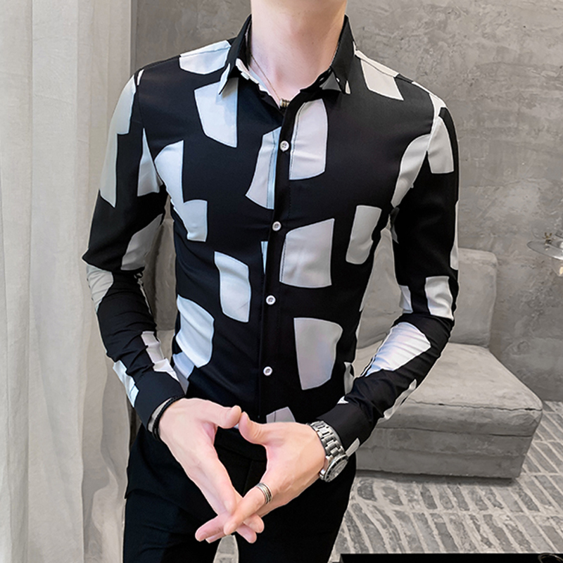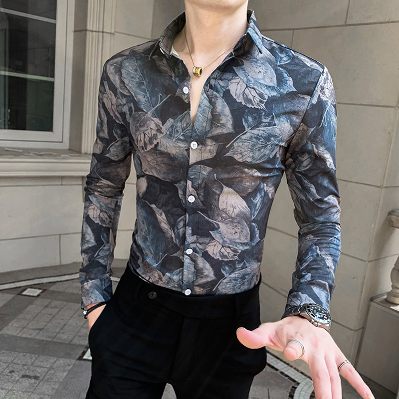 2021 new spring and autumn long sleeve shirt men Korean trend slim handsome casual high-end printing men's shirt