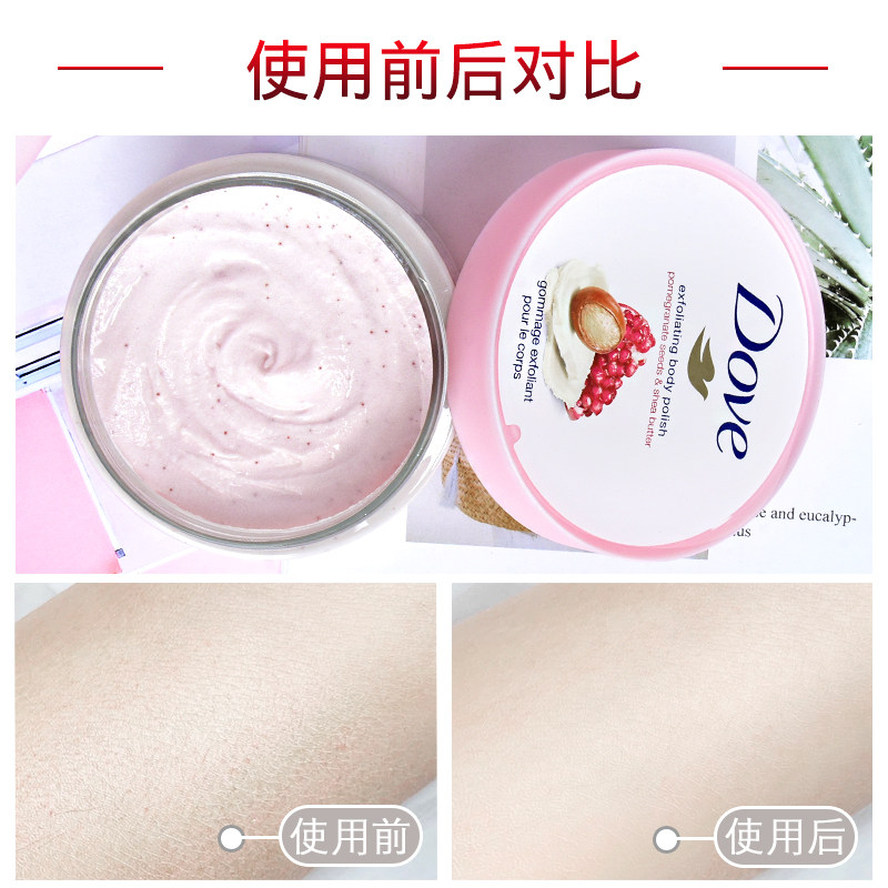 dove Dauphin body scrub ice cream pomegranate seeds plus Shea to remove chicken skin and exfoliate whole body female 298G