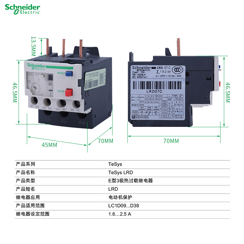 Schneider thermal relay LRD overload overheating protection three-phase thermal overload relay LRD08C 10C 14C