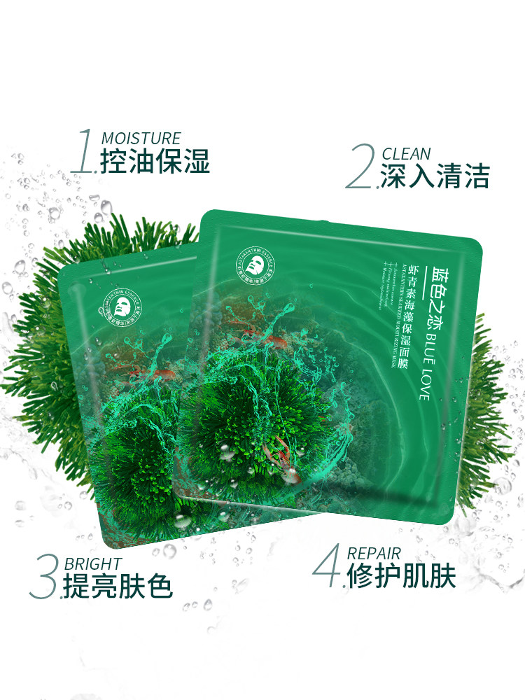Blue Love Astaxanthin Seaweed Moisturizing Mask Moisturizing Moisturizing Clean Pore Facial Repair Essence