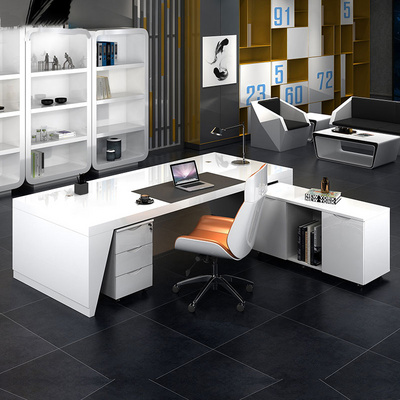 European style 2 8 meters white simple boss table President table creative computer desk Large desk manager table baking paint