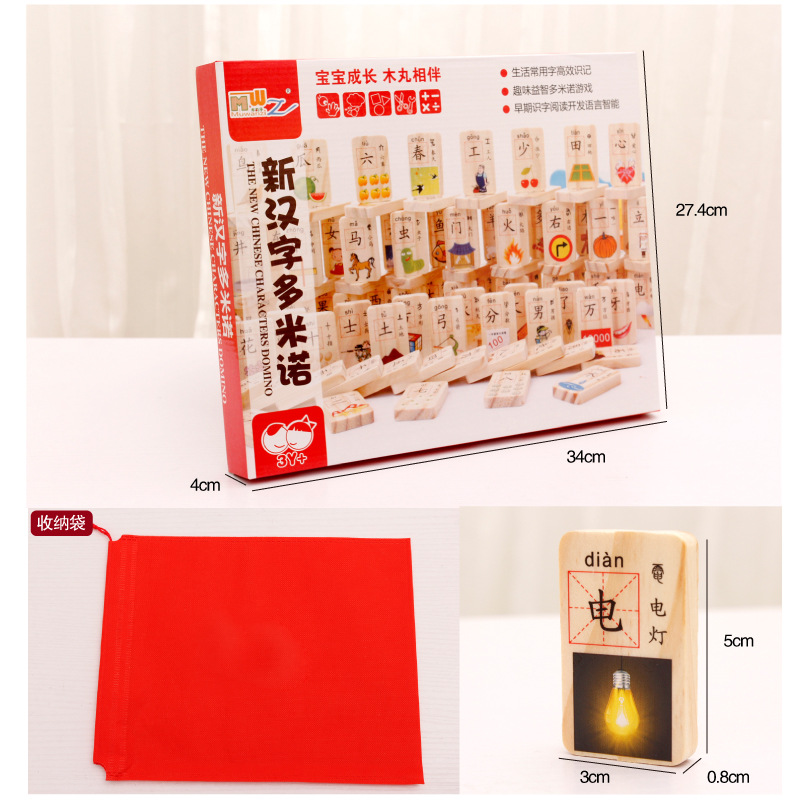 100 pieces of double-sided digital Chinese character domino building blocks (send storage bag) 100 pieces of double-sided fruit animal cognition domino building blocks (send storage bag) 100 pieces of double-sided fruit Chinese character domino product