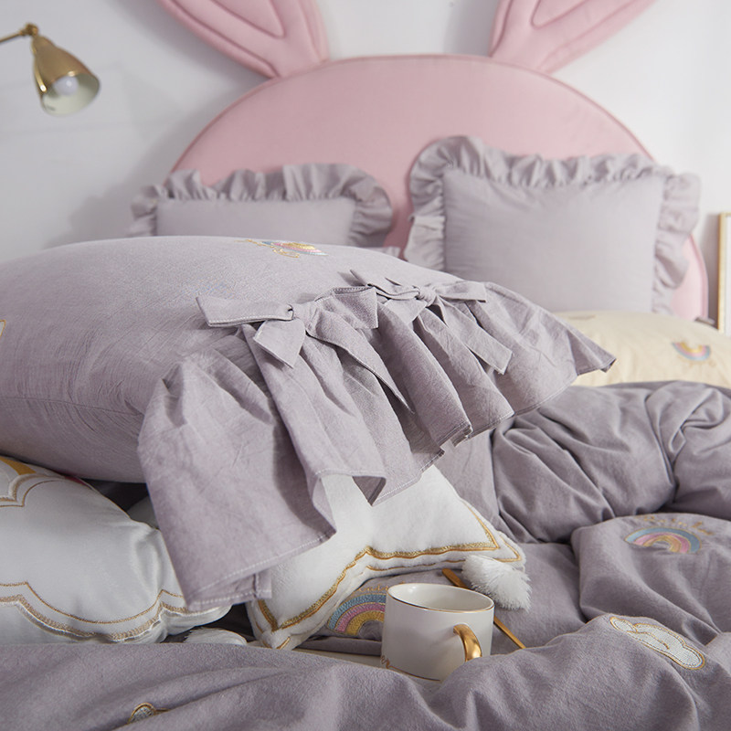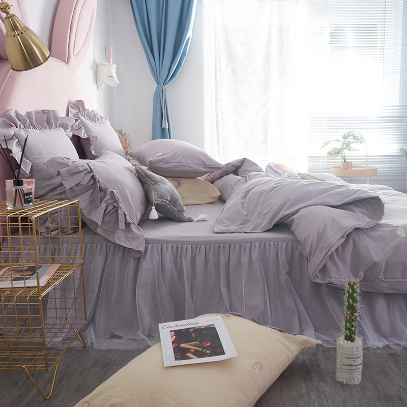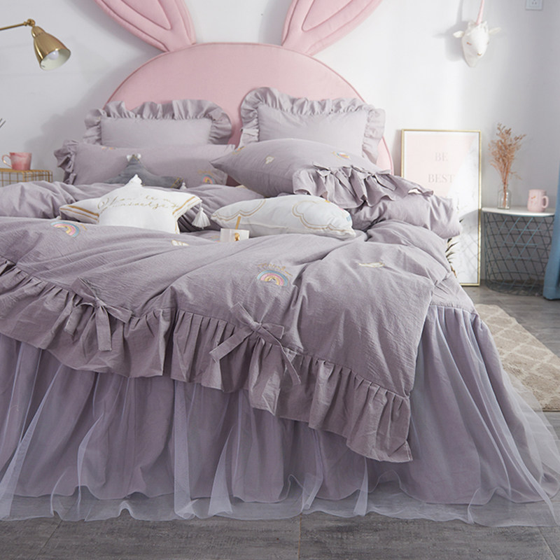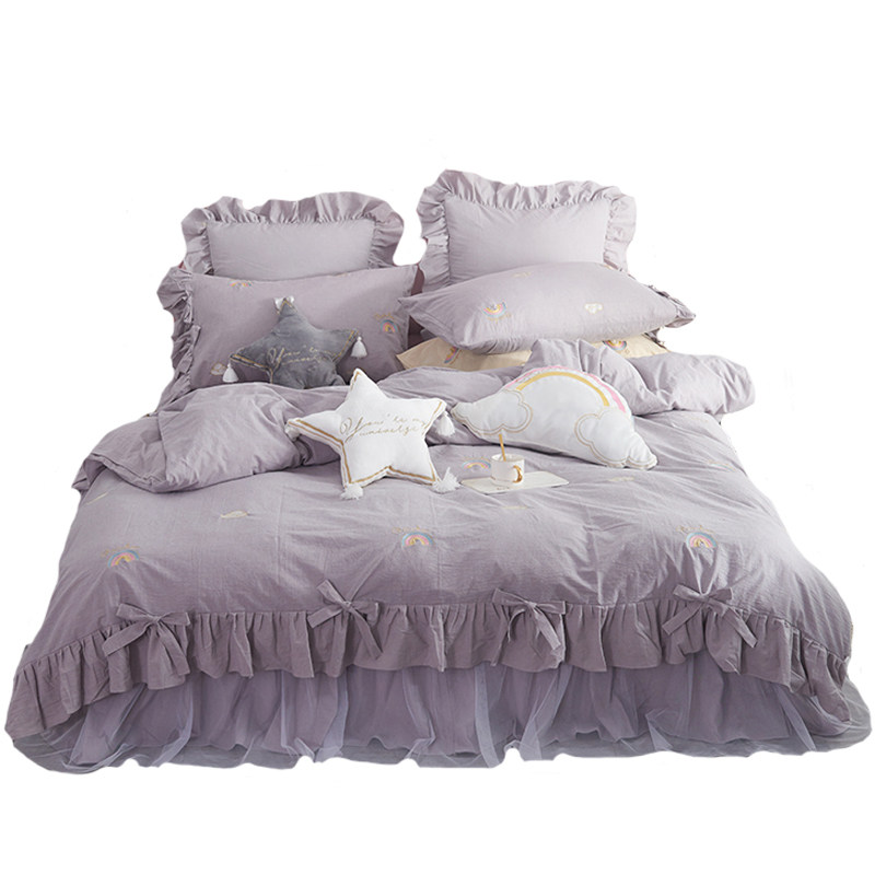 ins net red girl hearts all cotton washed cotton bed 4 four pieces of covered pure cotton princess wind butterfly knot bed skirt style