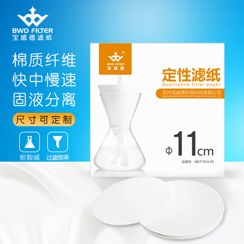 Baoweide experimental qualitative filter paper 7 9 11 12 5 15 18 round oil detection test paper laboratory quantitative filter paper medium speed fast slow filter paper