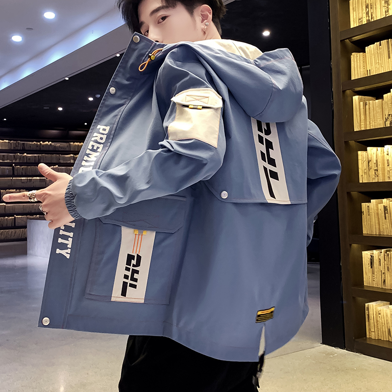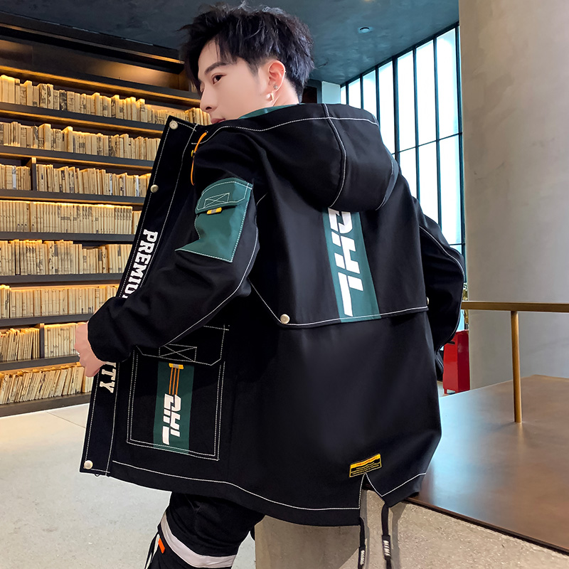 Windbreaker men's mid-length version 2022 new spring Korean version of the trend handsome spring and autumn jacket plus velvet overalls jacket men