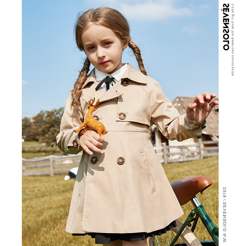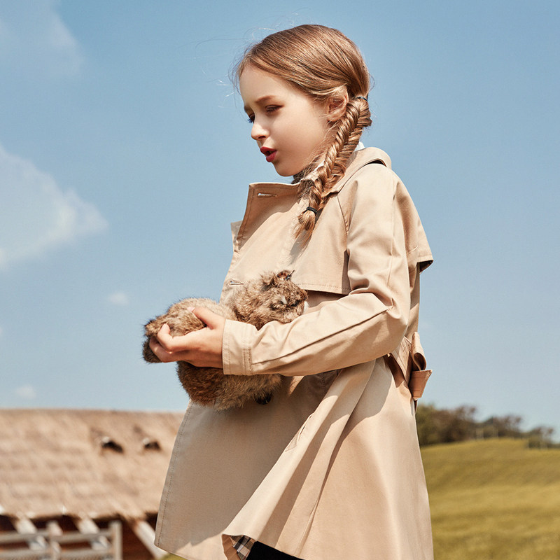 Girl's windcoat jacket autumn clothing 2022 new Korean version of the Korean version Spring and autumn Princess Inlomwind Children in the long version Leisure