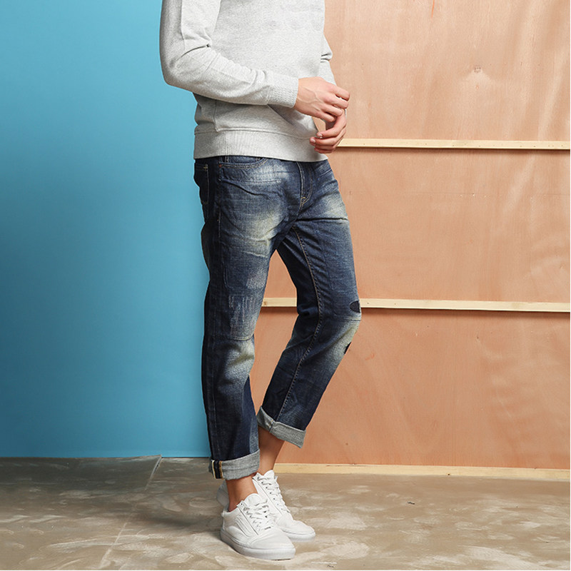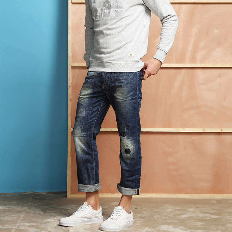 Clear Cabin LEE Men's Style Jeans Blue Straight Drum Tide Washed hole 100 lap casual L13551P59S06