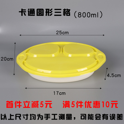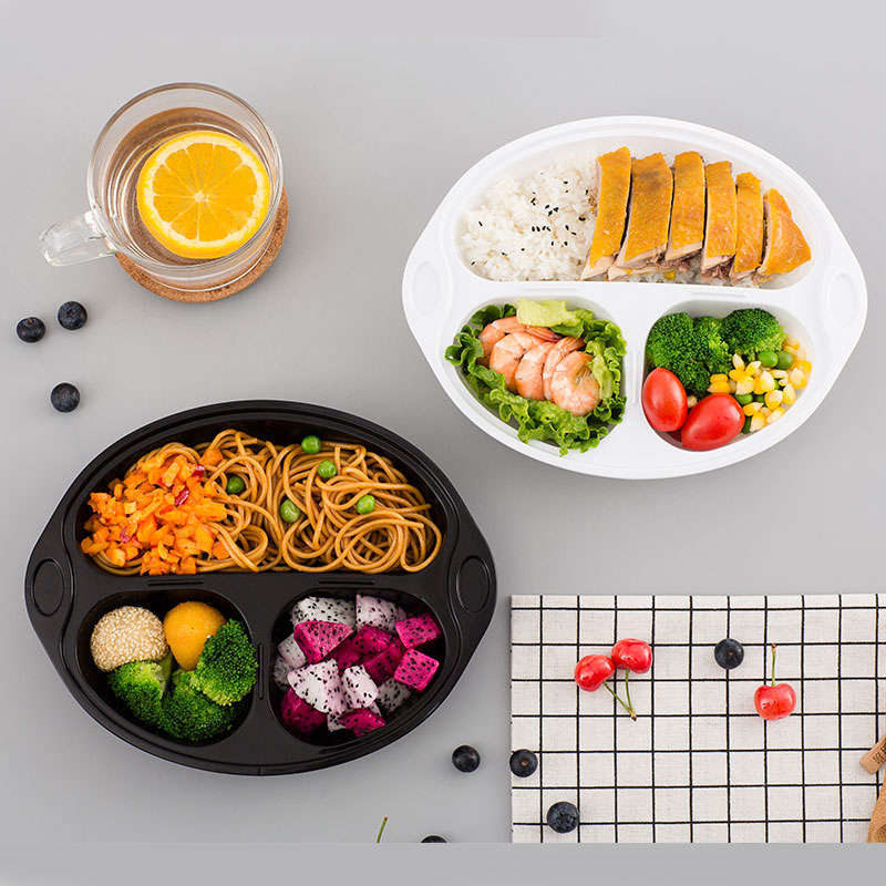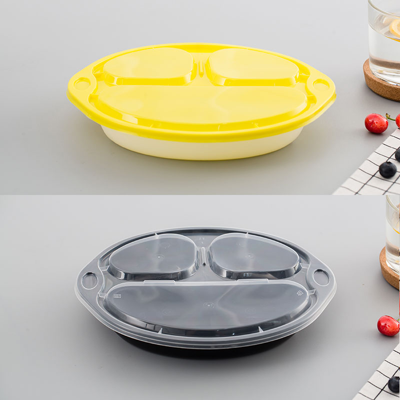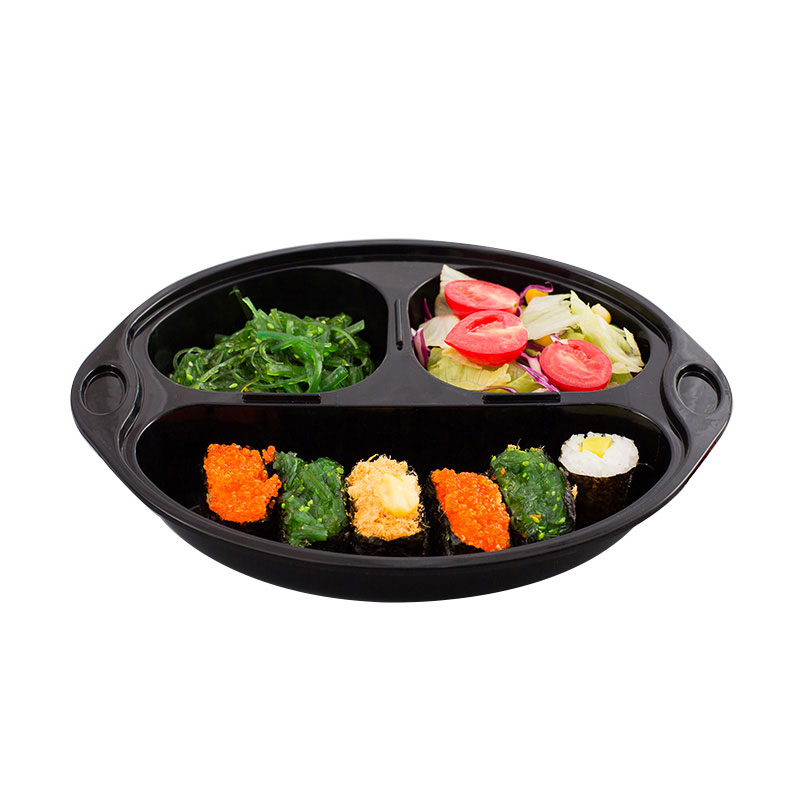 Disposable lunch box 3 packaging fast food packaging oval multiple pieces when fruit fishing box thickens black