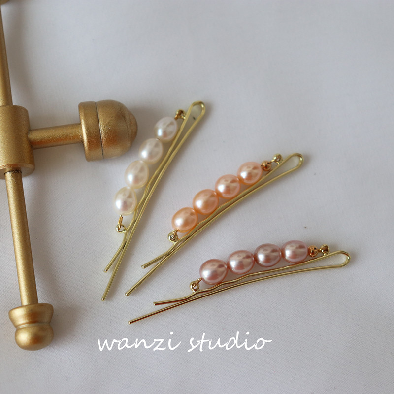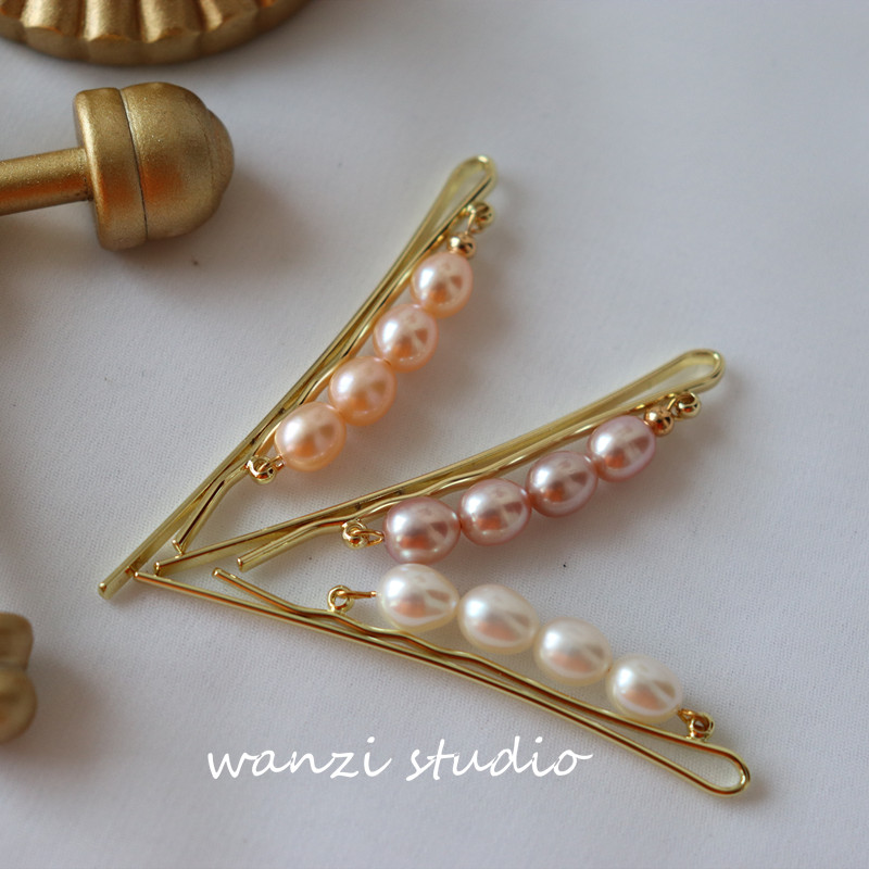 Self-wearing natural freshwater pearl baroque net red retro French word clip hairpin bangs clip hair accessories
