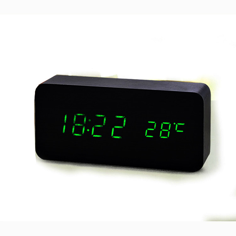 New creative LED multifunctional wood clock wooden home electronic alarm clock mute digital clock temperature