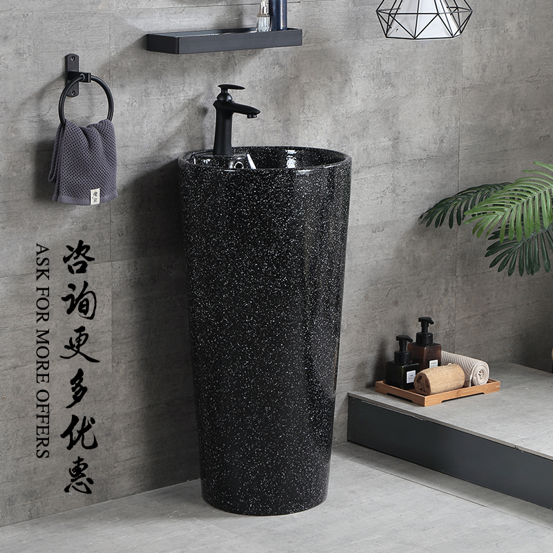 Obsidian column basin square wash basin floor to ceiling basin one-piece basin integrated basin balcony ceramic ceramic basin