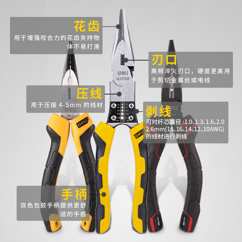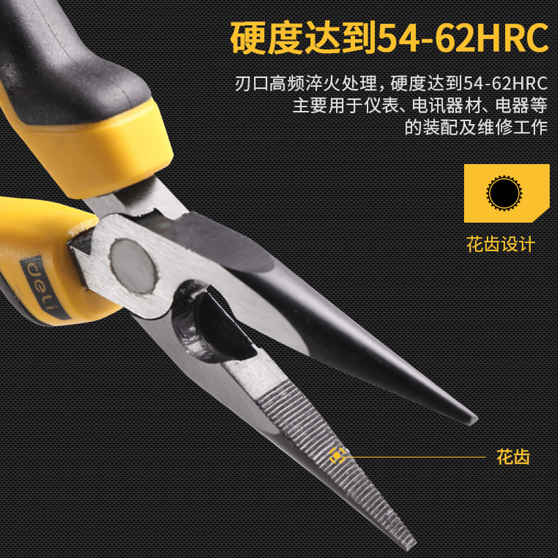 Deli pointed nose pliers multi-function pliers small 6 inch manual 8 inch mini industrial grade Daquan stainless steel electrical tip