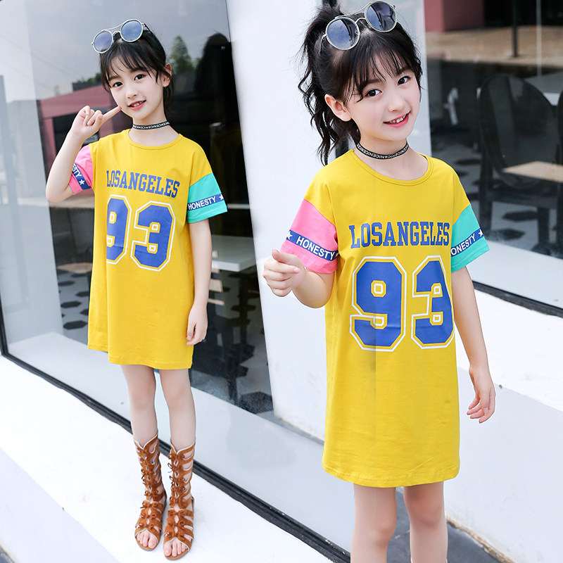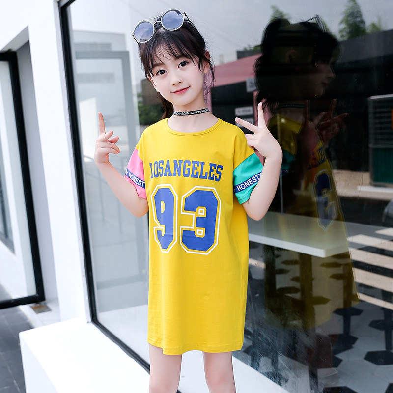 Girl short sleeve T-shirt child 2021 new summer dress CUHK child Korean version of the long version printed blouses T-shirt Skirt Tide