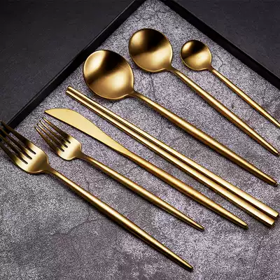 Titanium alloy-knife, enlarged fork, titanium alloy-enlarged spoon and chopsticks, titanium alloy-knife, enlarged fork, enlarged spoon, titanium alloy-knife, enlarged fork, enlarged spoon and chopsticks, powder gold-knife