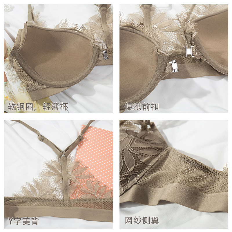 Front buckle bra summer thin summer gathering soft steel ring anti-drop perpendicular lace cross with beautiful underwear