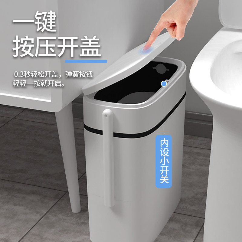 Crevice powder room trash can Household with lid Kitchen living room creative high-grade Nordic Toilet waste paper bucket narrow paper basket