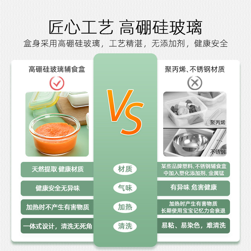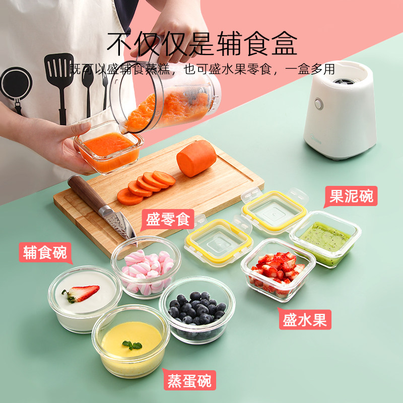 Baby food bowl Baby glass box Can cook cake tools special frozen preservation storage box Full set
