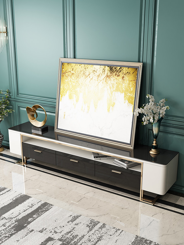 Rear modern gilded tea table TV cabinet Combined port style light lavish small household type baking varnish black and white minimalist storage lockers