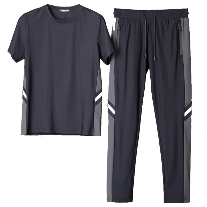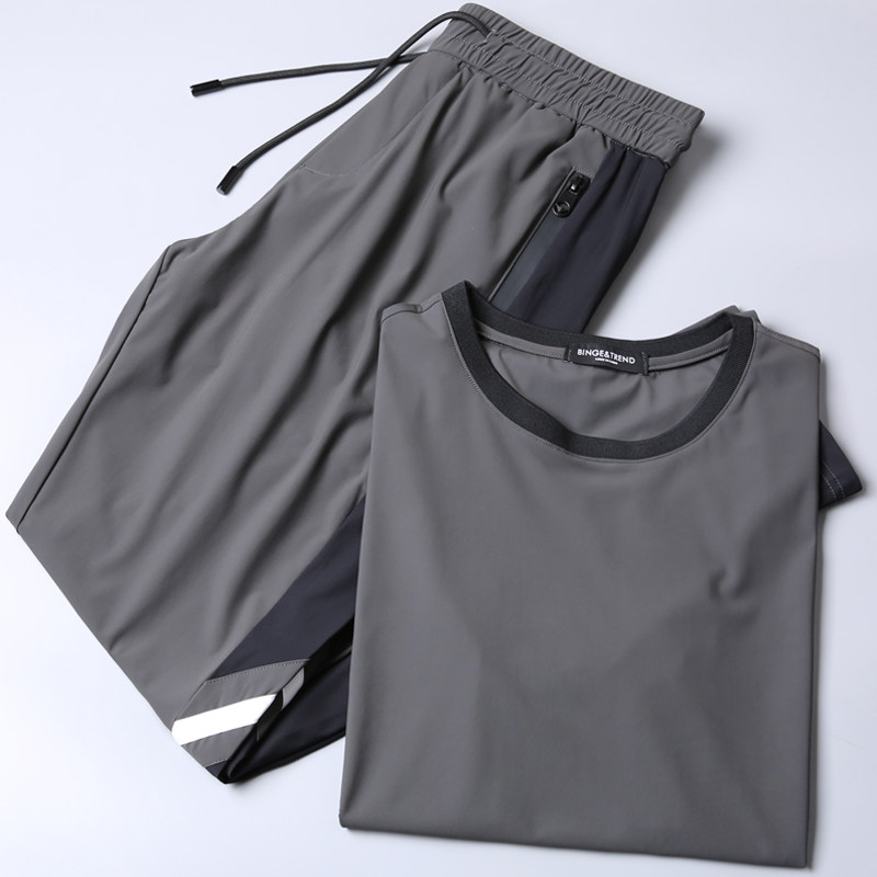 Silky lightweight Q stretch Ultra-thin speed dry ice wire two-piece summer high-end men's casual sports set