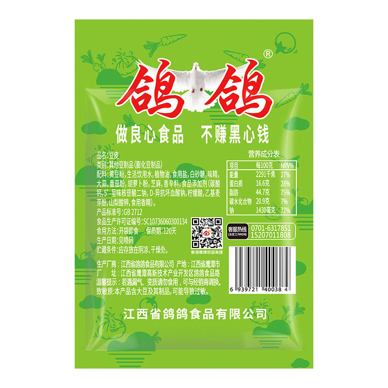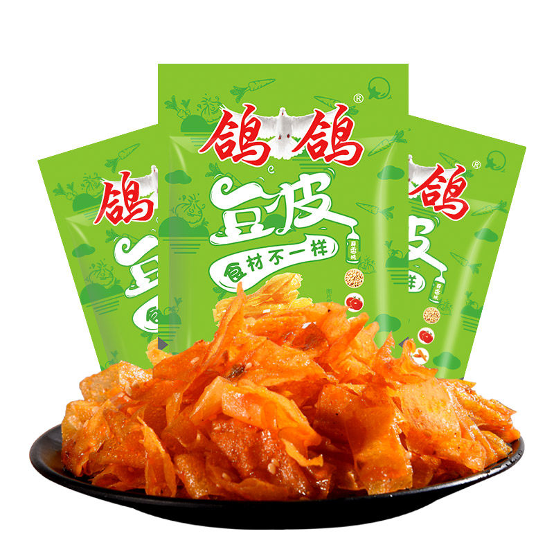 Pigeon Dove Garlic Spiced Bean Skin 500g Spicy Slices Nostalgic with Spicy Bean Peel Peppery Spicy Strips Casual Snack Delicious Tofu Peel