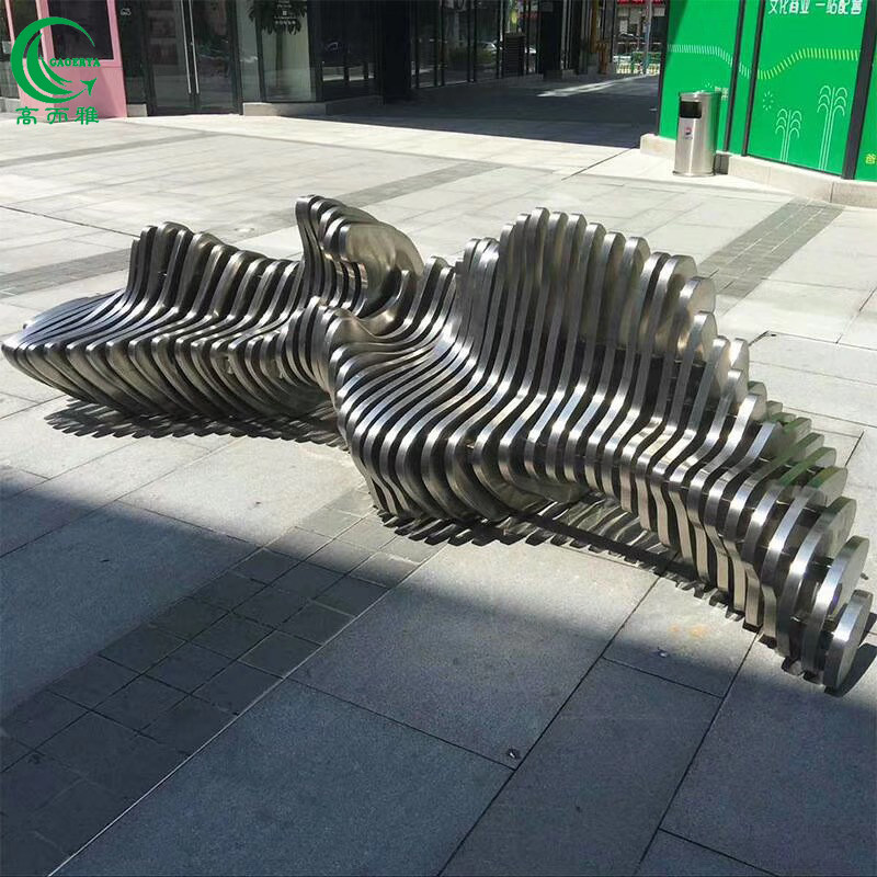 Stainless Steel Metal Slice Seat Outdoor Square Commercial Street Beauty Chen Mall Hall Creative Bench Manufacturer Customised