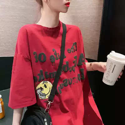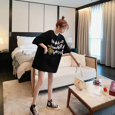 Summer loose bf lazy wind short-sleeved T-shirt women's long version of net Red foreign pie bouncy skirt half sleeve clothes ins tide