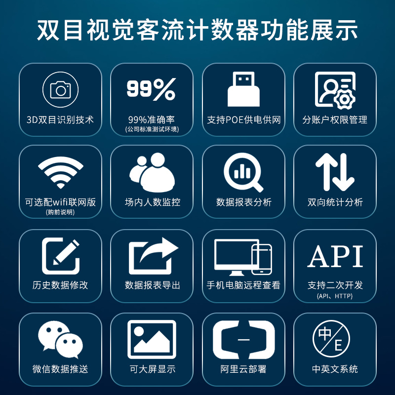 Monocular base version (covering 2 m wide) binocular base version (covering 2-3 metres wide) Binocular Flagship version (covering 3-4 metres wide) Outdoor waterproof version (covering 4 m wide) Dual destination wifi version (