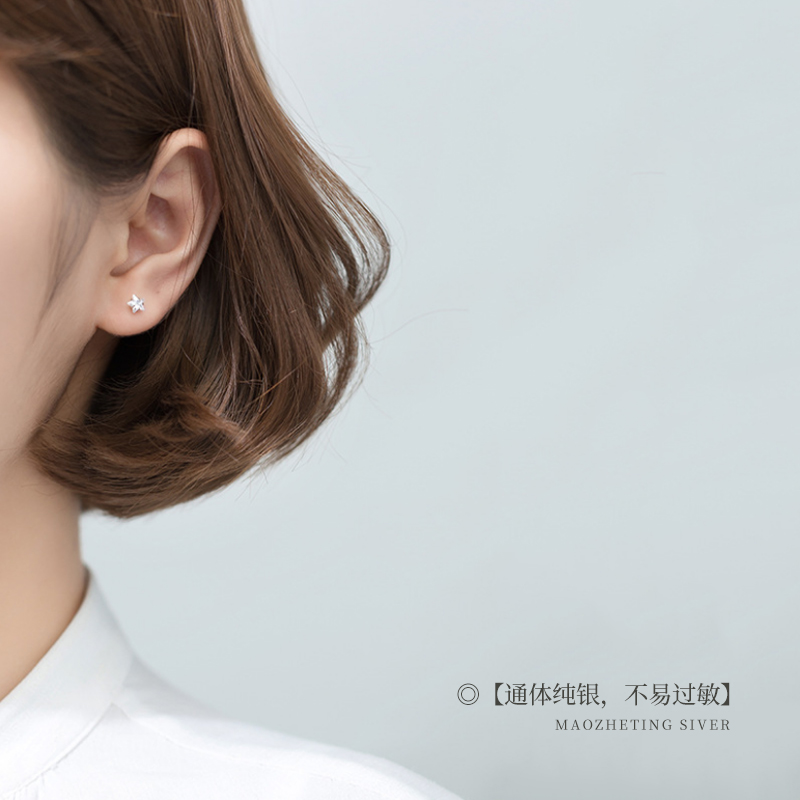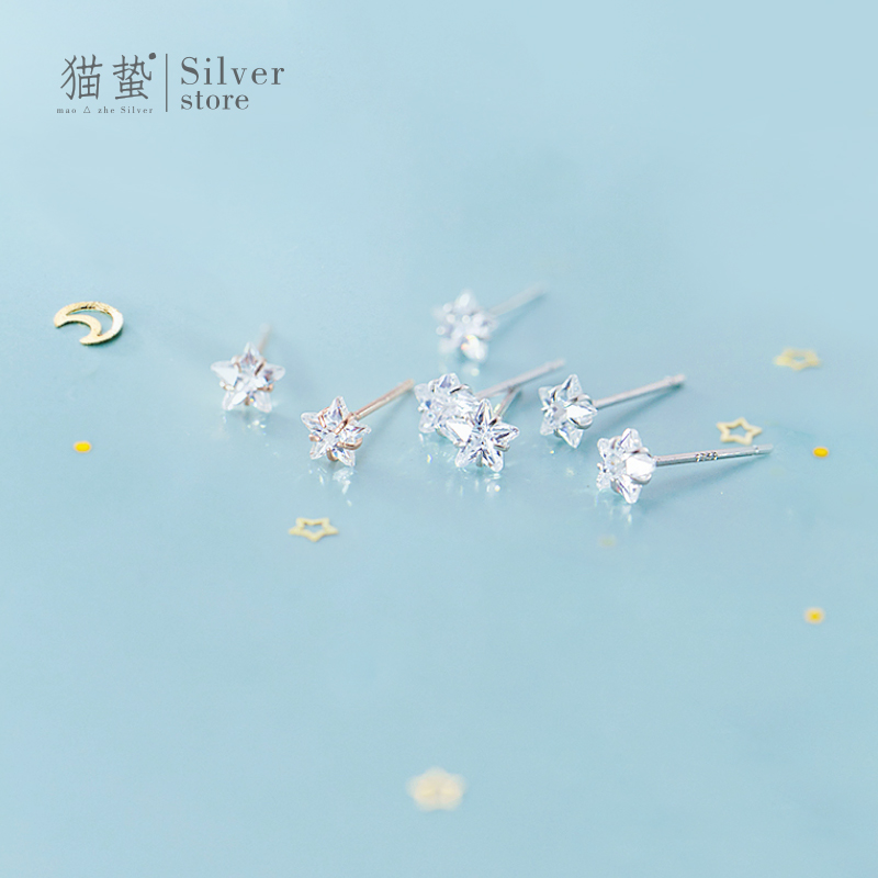 Cat Sting S925 Sterling Silver Star Mini Zircon Stud Earrings Female Japanese and Korean Small Simple Small Schoolgirl Hypoallergenic Silver Jewelry