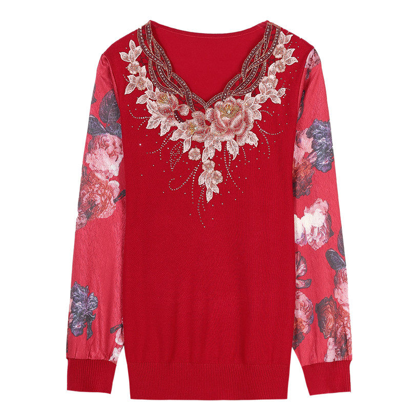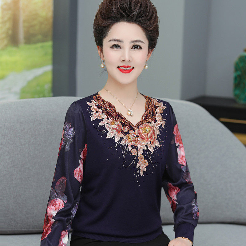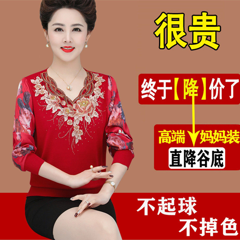 Mom Spring and Autumn Wear Knitted Town Large-yard Middle Age Noble Sweater Middle Old Woman Thin Blade