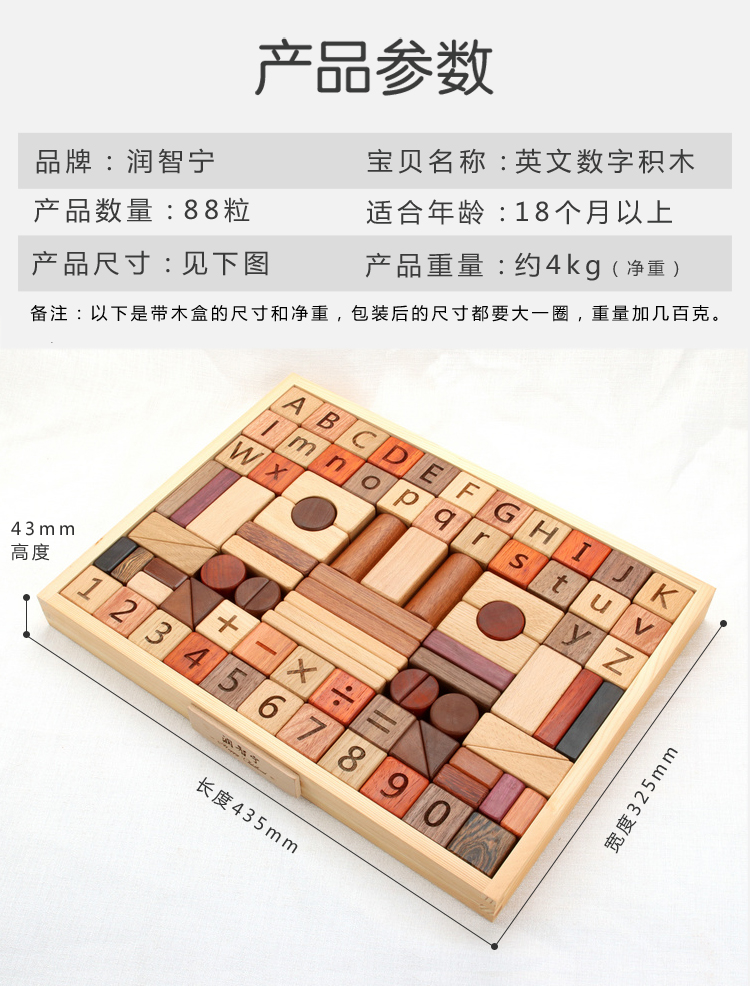Runjing Natural Log Block 1 - 2 years old 3 - 6 baby gift digital English Puzzle children's toys