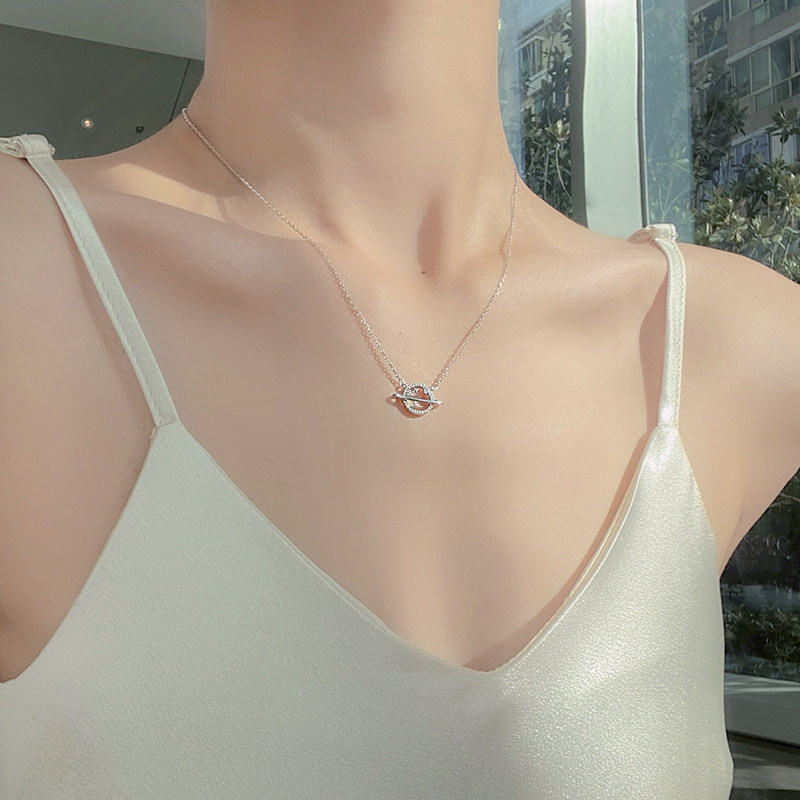 Planet Pure Silver Necklace Woman Light Extravaganza Design Advanced Sensuary Lock Bone Chain 2021 New Birthday Gift