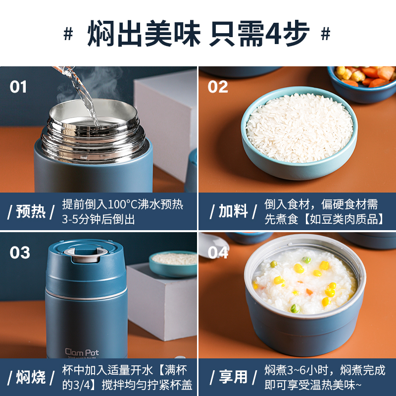 304 stainless steel braised beaker woman portable extra-long insulation student bucket lunch box 1 person at work group smother and stew porridge theorist