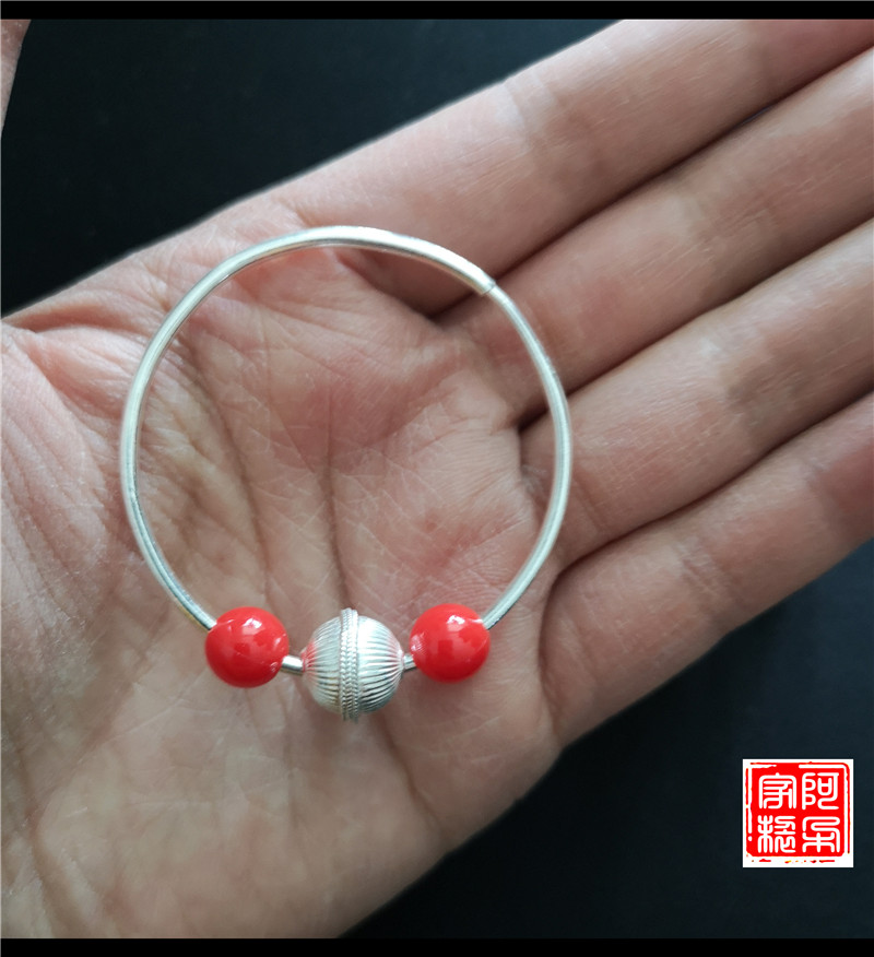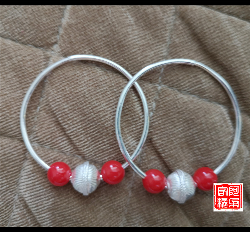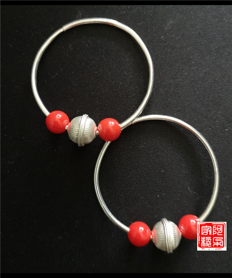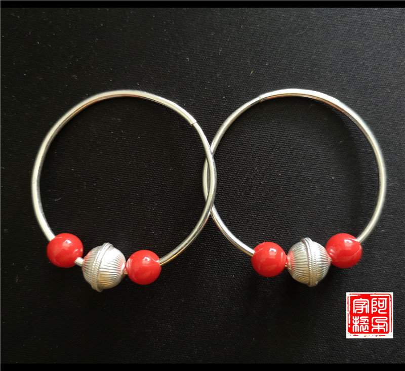 Yi Aduo large circle silver earrings with silver beads and red beads Yi sterling silver pure handmade ethnic style female earrings