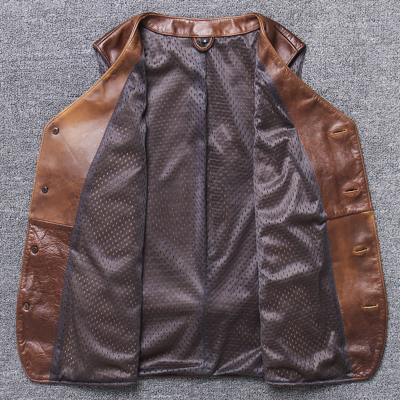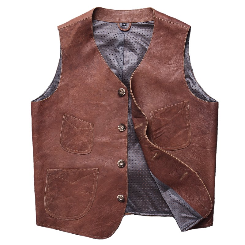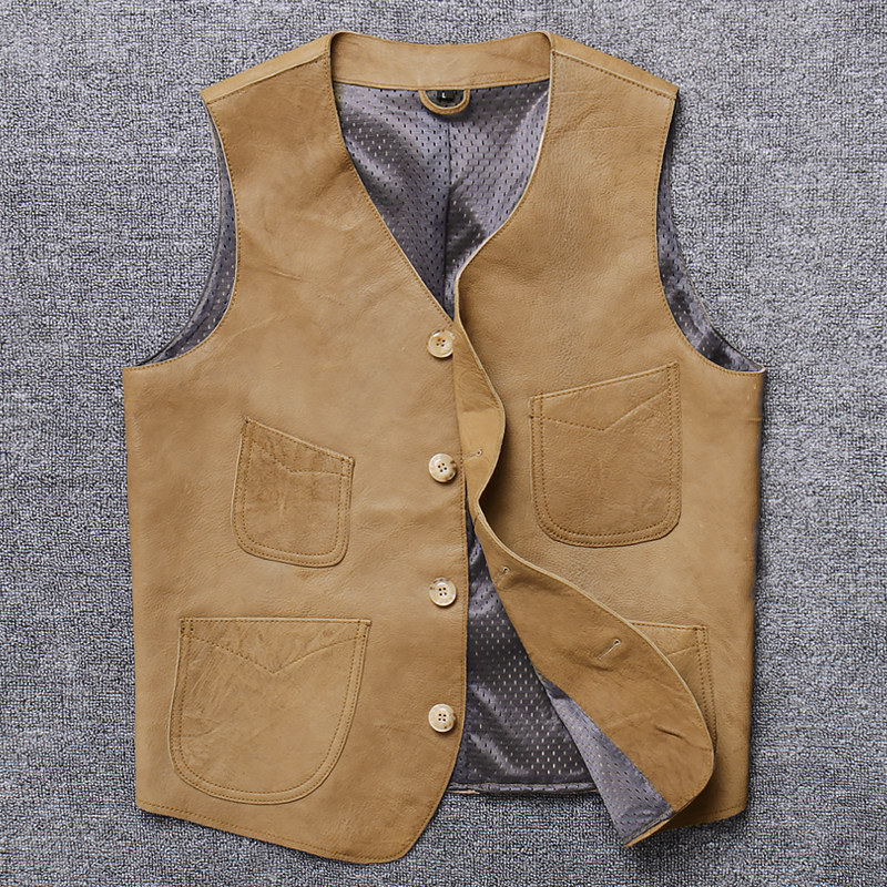 Special price First layer cowhide leather leather men's Japanese vintage vest Slim-fit waistcoat sleeveless riding suit vest