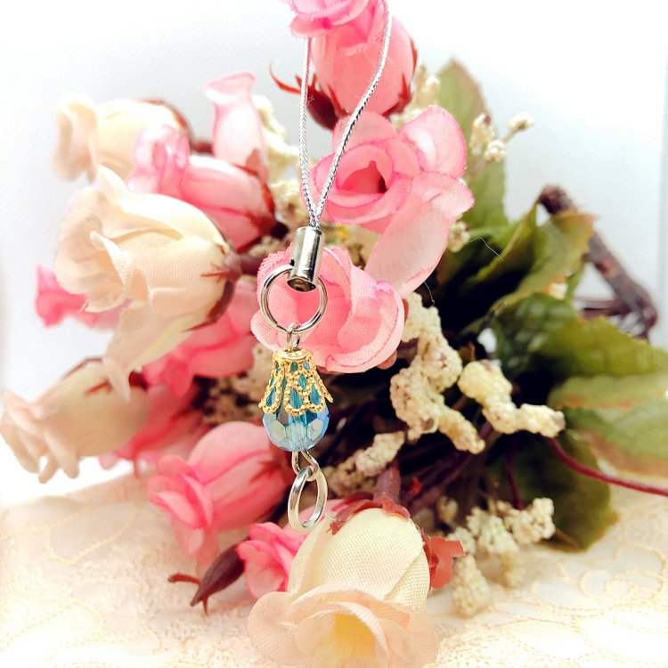 DIY accessories Alloy Flowers Entrusted Blue Water Drop Crystal Beads Pendant Pendant Pendant Chain China Wind
