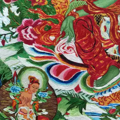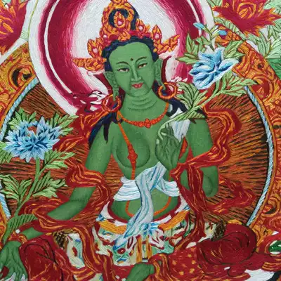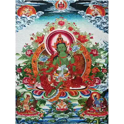 Ten pretty Niang Su embroidery finished hanging painting Hand embroidery messy needle embroidery Thangka green mother Buddha statue handicraft Buddhist supplies