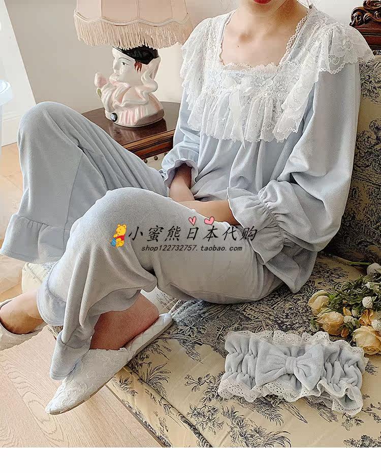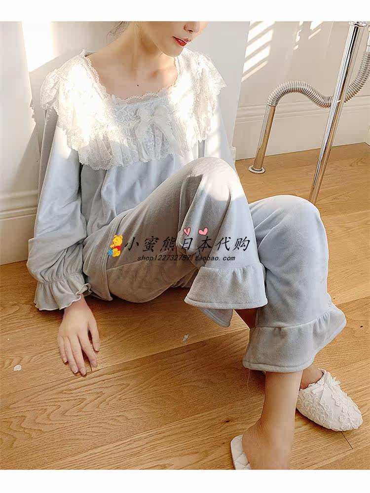 Japanese gp autumn and winter pajamas female lace princess style two-piece sweet long-sleeved home clothes