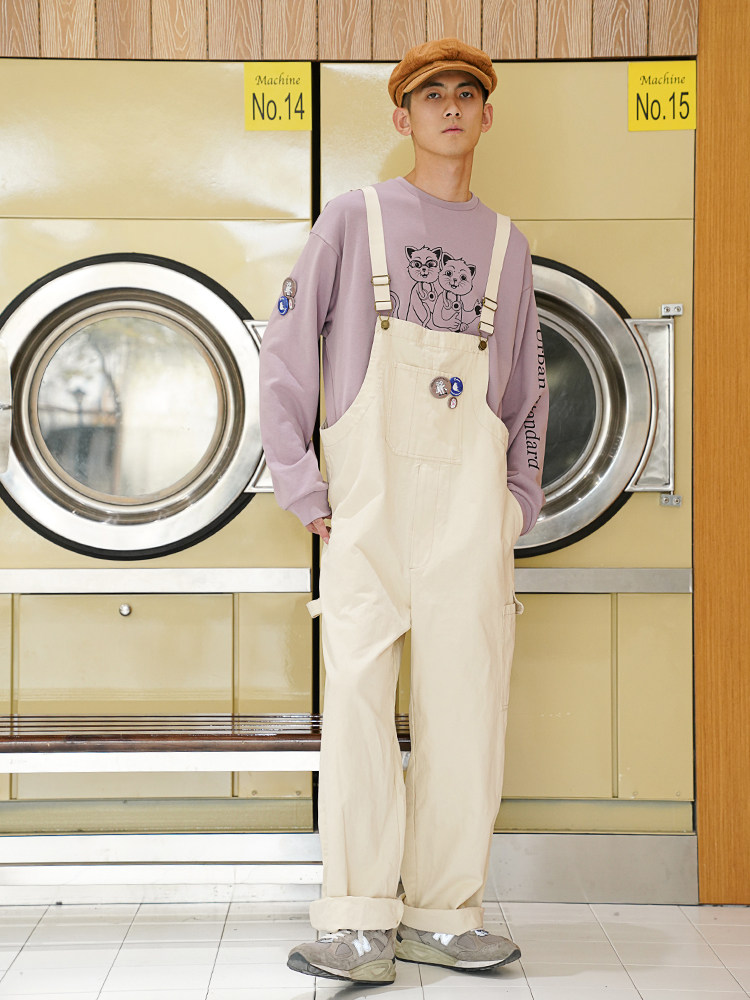 UrbanStandard Japanese Tide brand loose white overalls men's and women's straight conjoined casual pants