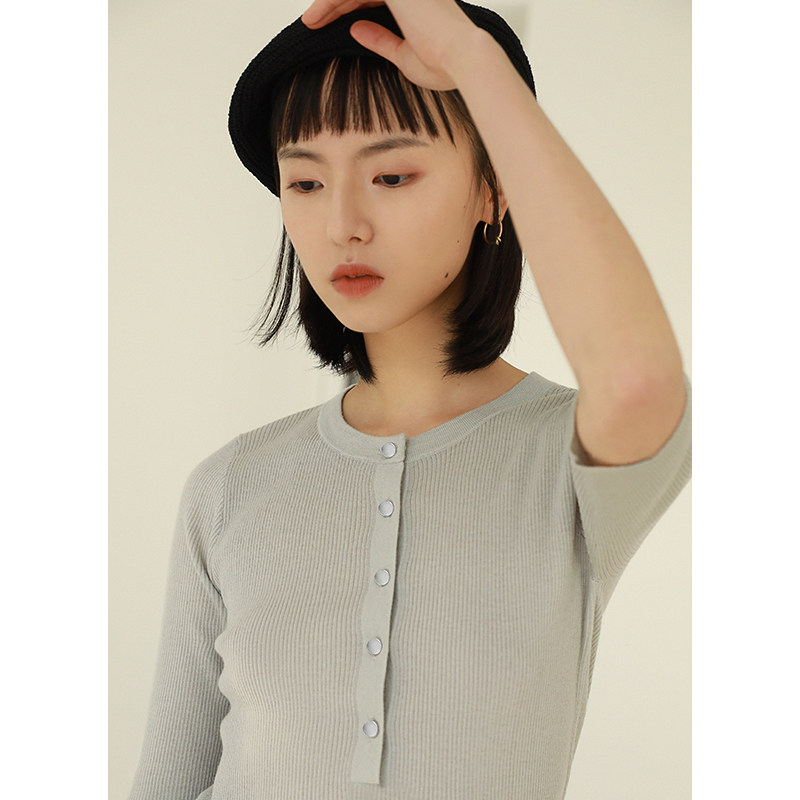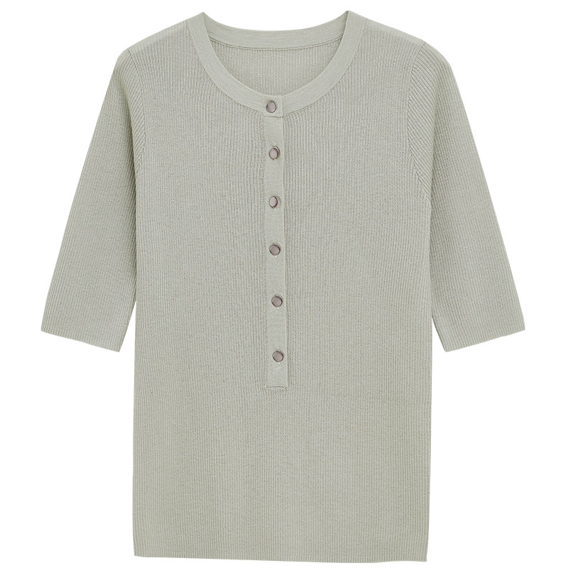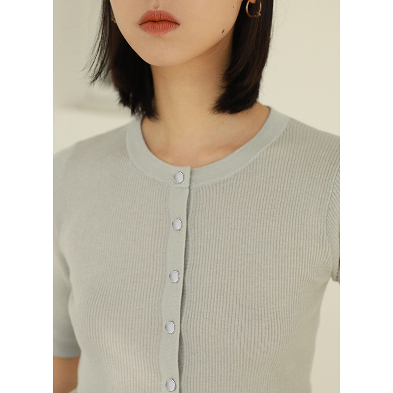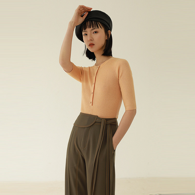 Self-fitting small knitted sweater women's short-sleeved 2021 spring and autumn new Korean version lazy slim fit slim knitted top women