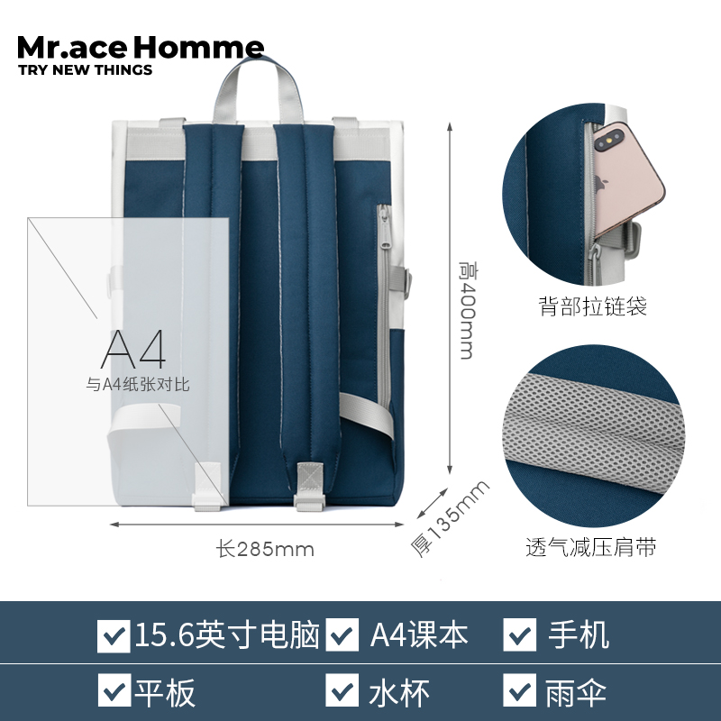 MACE Travel Backpack Male Fashion College Student Bookbag Capacity Computer Package High School Student Shoulder Pack Female