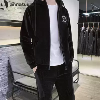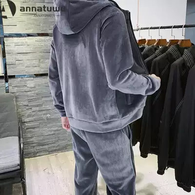 Golden velvet suit men 2021 autumn new two-piece trend Korean version handsome spirit guy mature style one