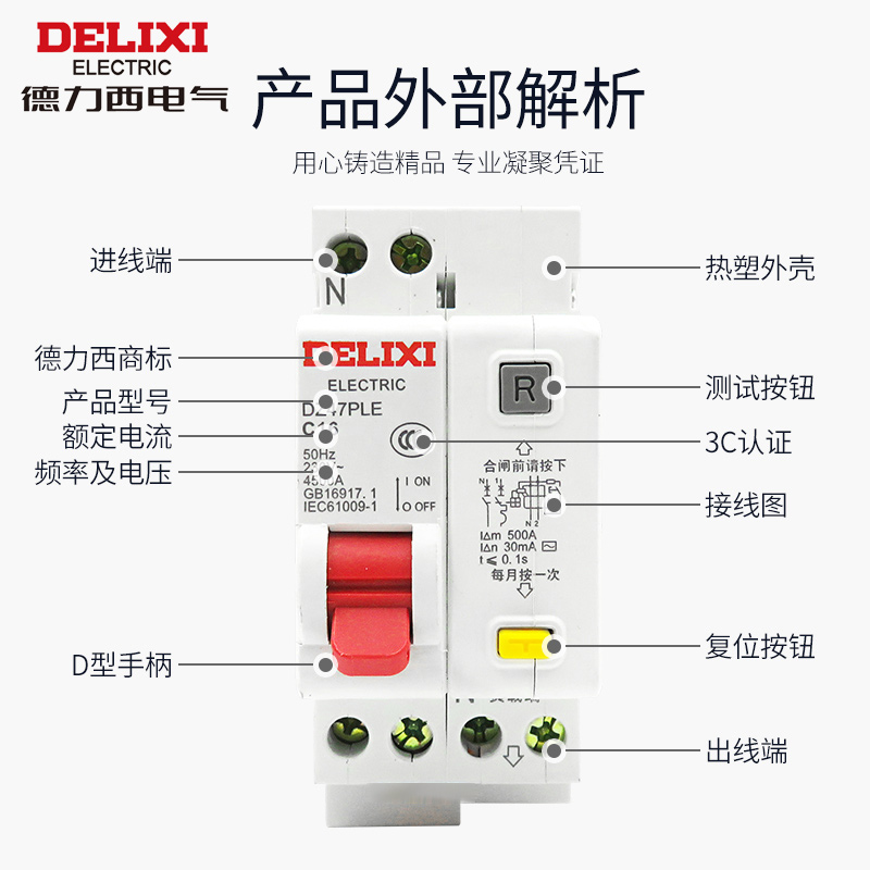 DZ47P Dual Inlet Dual Outlet Household 1P + N Short Circuit Leakage Protection Circuit Breaker