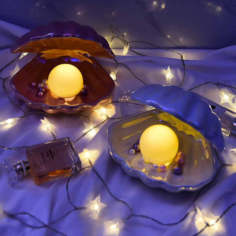 Ceramic luminous pearl bay shell small night light Bedroom bed head cabinet decorated with small swinging piece romantic girl's heart shake gift