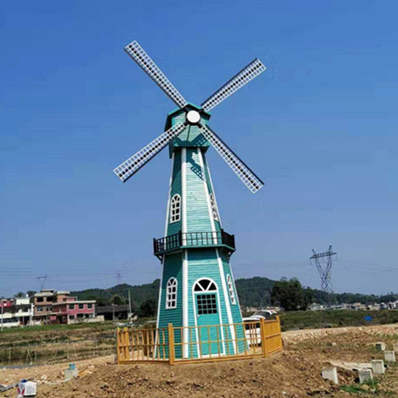 Dutch anti-corrosion wood windmill outdoor solid wood decoration rotating electric pastoral flower sea view park ornaments windmill